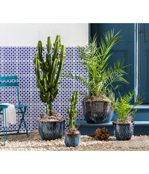 Schon die interessante Wuchsform, die an alte, mehrarmige Kerzenleuchter erinnert, sichert diesem imposanten Zimmergenossen die volle Aufmerksamkeit jeden Betrachters. Aber die Abessinische Wolfsmilch von Dehner setzt nicht nur auf eine faszinierende Figur, sondern möchte auch durch Größe imponieren. Deshalb wächst die Sukkulente relativ schnell und bemüht sich, ihre maximale Wuchshöhe von 3 m zu erreichen. Und was das für ihre Wirkung im Wohnraum bedeutet, kann sich jeder ausmalen! Die Abessinische Wolfsmilch stammt ursprünglich aus Äthiopien und ist eine sukkulente Staude mit den typischen, dickfleischigen Blättern bzw. Trieben. Zwischen Juli und August trägt die Zimmerpflanze orangegelbe Blüten, die ihren exotischen Reiz noch steigern.