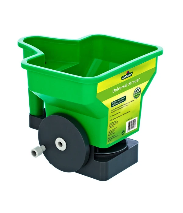 Gute Gartengeräte erleichtern Ihnen die Arbeit enorm – so wie der Düngerstreuer von Dehner in Markenqualität. Das Gerät aus stabilem Kunststoff bringt Streugut gleichmäßig und leicht dosierbar aus, ob Dünger, Saatgut oder auch Sand. Sie können zwischen drei Voreinstellungen zum asymmetrischen Ausbringen des Streugutes wählen, eine genaue Streuguttabelle zeigt Ihnen die jeweils richtige Menge an. Der Streuer funktioniert über eine Handkurbel und eignet sich daher besonders gut für enge und verwinkelte Stellen.