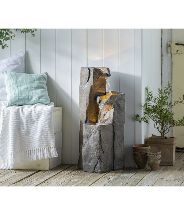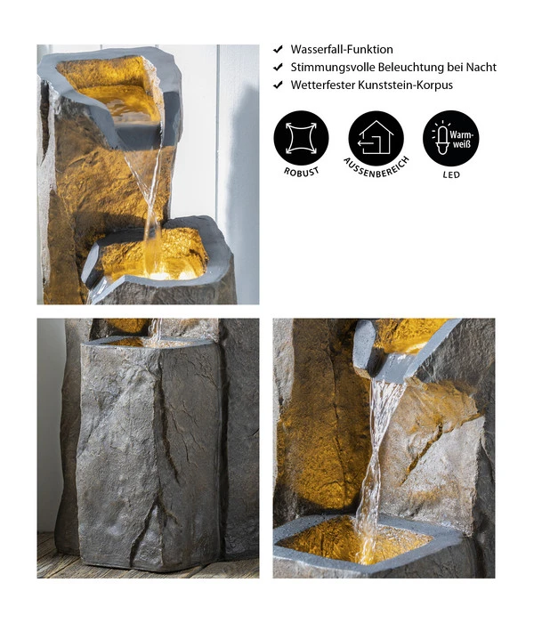 Kunstvoller Outdoorbrunnen, inkl. LEDs, Adapter & Pumpe