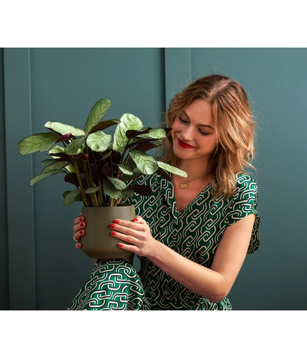 Grün im Wohnzimmer beruhigt und macht glücklich. Aber die Korbmarante burle-marxii ist mehr als nur grün. Vielmehr zeigt sie sich im Schmuck vieler länglicher Blätter, deren weißlich-grüne Vorderseite mit einem dunkelgrünen Muster verziert sind und deren dunkelviolette Blattunterseite einen aparten Kontrast dazu bildet. Das Verblüffende dabei: Werfen Sie bei Tag einen flüchtigen Blick auf die Pflanze, werden Sie die dunkle Unterseite kaum wahrnehmen; einen besonderen Reiz entfaltet die Ctenanthe erst am Abend, wenn sie nämlich ihre Blätter für die Nacht hochklappt, so dass sie den Blick freigibt auf die dunkelviolette Unterseite. Lassen Sie sich von diesem einzigartigen Schauspiel begeistern und bereichern Sie Ihre Pflanzensammlung mit der aparten Korbmarante! Und genießen Sie dabei gleich noch die anderen Talente der aus den undurchdringlichen Regenwäldern Brasiliens und angrenzender Länder stammenden Tropenschönheit!