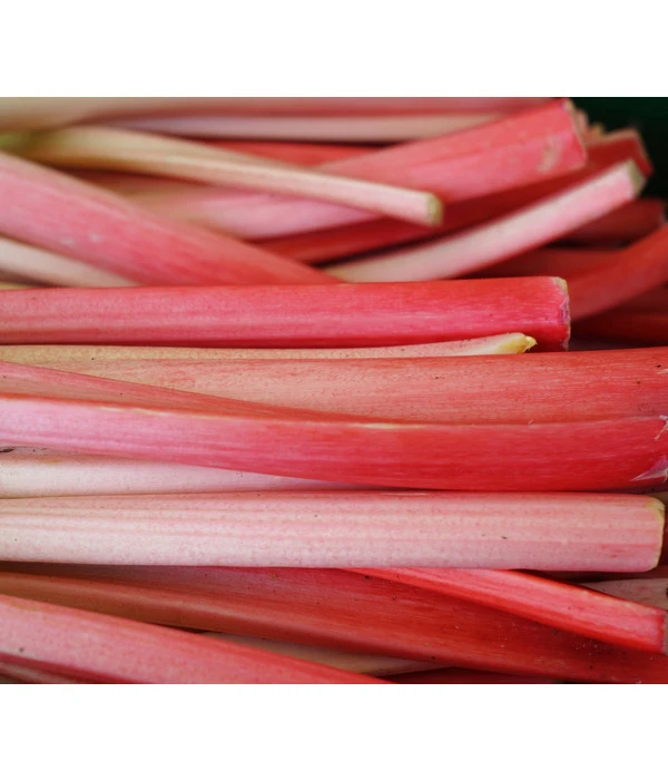 Mit dem Rhabarber ‚Livingstone‘ holen Sie sich eine ganz besondere Sorte in den Garten. Denn dieser Rhabarber lässt sich im Sommer und im Herbst abernten. Im Gegensatz zu den anderen Sorten zieht er sich nicht ins Rhizom zurück, sondern verbleibt über der Erde. Normal soll Rhabarber bis zum Johannitag, den 24. Juni, abgeerntet sein, allerdings nicht so die Sorte ‚Livingstone. Bei ihr haben Sie keinen Stress alles auf einmal zu ernten, bevor der Oxalsäuregehalt zu hoch wird. Sie können entspannt Monate hinweg ernten. Im Herbst haben Sie sogar höhere Erträge als im Sommer. Doch ‚Livingstone‘ hat auch eine Gemeinsamkeit mit den anderen Sorten, nämlich den Geschmack. Er hat das typische Rhabarber-Aroma, schmeckt nur etwas milder als die frühen Sorten. Die Stiele sind lang, mitteldick, fadenlos und rosarot. Im Inneren sind sie grün mit einem leichten Hauch rosa. Roh mit etwas Zucker oder gekocht verarbeitet wird der Rhabarber zum Genuss. Er eignet sich zum Beispiel als Kuchenbelag oder für Marmeladen.